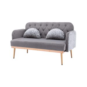 Velvet Sofa, Button Tufted Couch with 2 Pillows