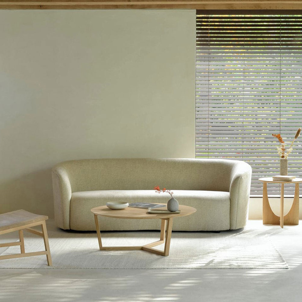 When drawing the Ellipse sofa, designer Jacques Deneef thought of an elegant piece with a generous seating. The natural fabric is woven exclusively for Ethnicraft in Belgium. Its coating repels stains.