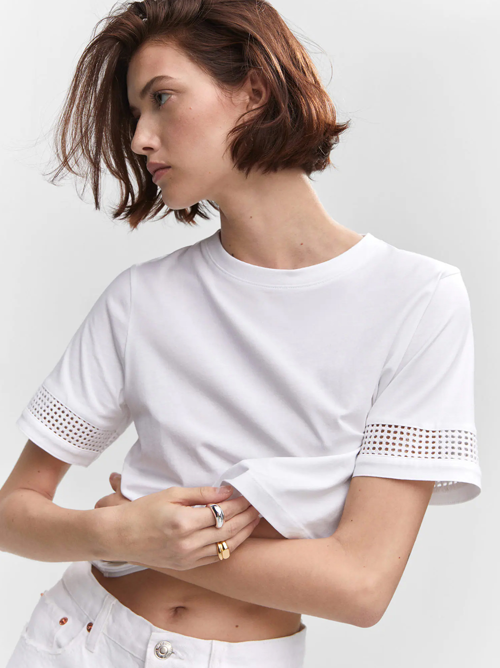 Women Solid Polo Neck Cotton Blend White T-Shirt